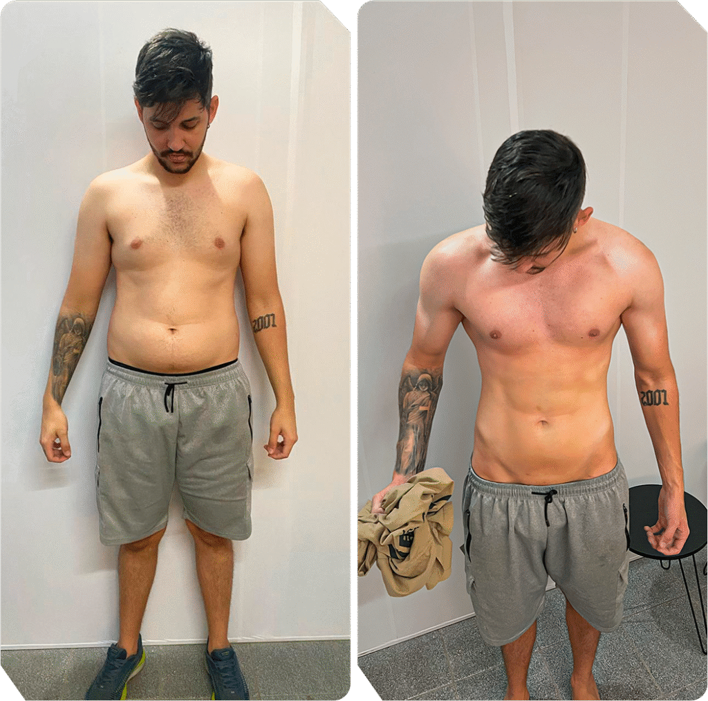 Antes de iniciar o acompanhamento, apesar de praticar até 3 atividades físicas por dia, não conseguia os resultados esperados. Após o tratamento, ganhou massa muscular, melhorou o sono e aumentou a autoestima.